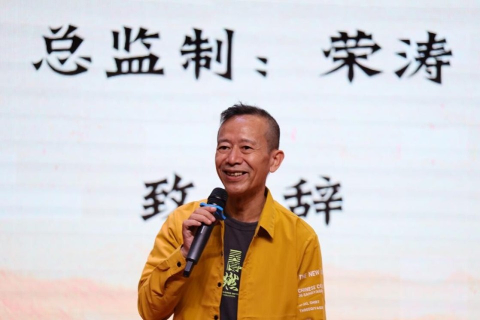总策划和总监制荣涛向嘉宾和观众表达了最热烈的欢迎。总顾问古歌不仅发表了深情致辞,还朗诵了自己创作的诗作《十六个爱》,随后介绍林国优科长朗诵了《卜算子•咏梅》和《忆秦娥•娄山关》,为活动增添了浓厚的文化氛围。艺术总监刘向明、文史总监贺贤赟依次上台致辞,深刻阐述了活动的重大意义以及对东纵精神的独特见解。