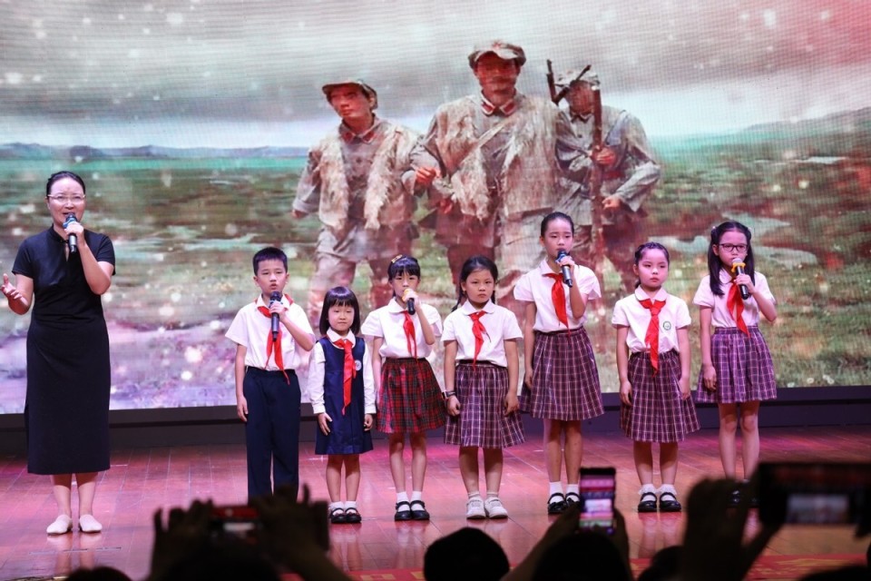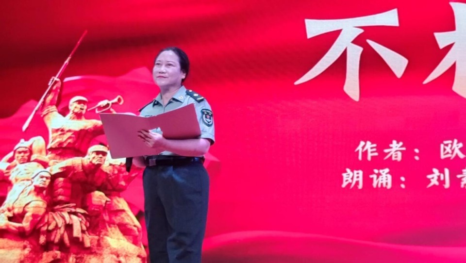 东纵精神赋篇章,周思明创作的《东纵精神赋》在刘晓波、赵志刚、童培凤、叶妙玲的朗诵中,深刻诠释了东纵精神的内涵,其中叶妙玲是东纵烈士的后人,当她朗诵着东纵诗篇时,心情无比复杂而又深沉,心中满是对爷爷的敬仰与思念。吴笛《信天游•说袁庚》由赵爱华朗诵,别具一格,颂扬了不同时期的袁庚;苏天林朗诵的《曾经当过兵》,充满了军人的豪情壮志;盐田实验学校初二学生伊桐带来的《爱上盐田》,深情诠释了盐田的魅力;卓叶的非遗树叶吹奏《青藏高原》,技艺精湛;歌唱家妙国身着军装,在四位小学生和四位身着军服挥舞旗帜的朗诵老师的配合下,朗诵诗歌《惠州人民抗日宣》并演唱《弹起我心爱的土琵琶》,激情澎湃,展现了革命军人的豪情壮志;黄金荣朗诵的《在欢呼的人群中》,情感饱满,深刻呈现了革命者的感人事迹。